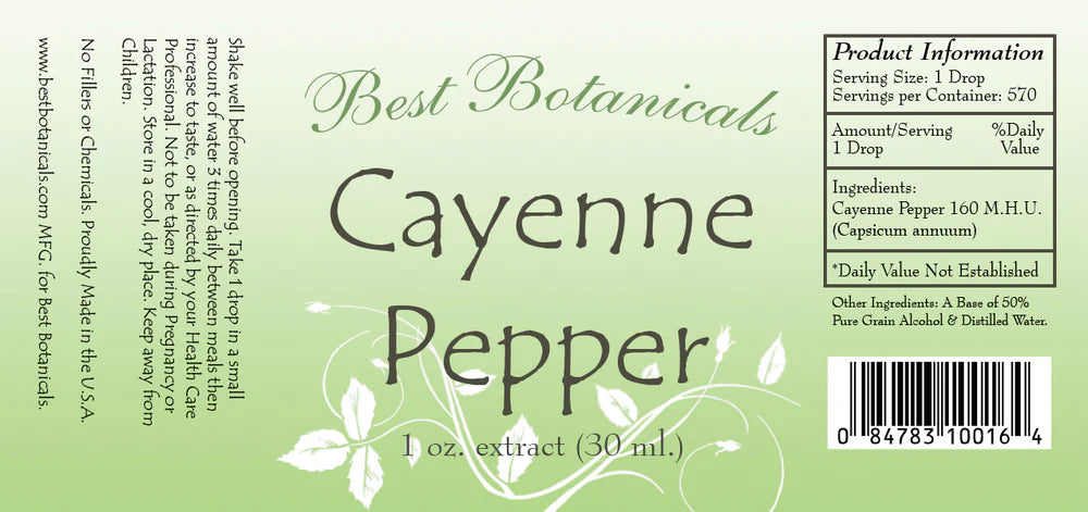Cayenne Pepper Extract 1 oz. 50% pure grain alcohol base.