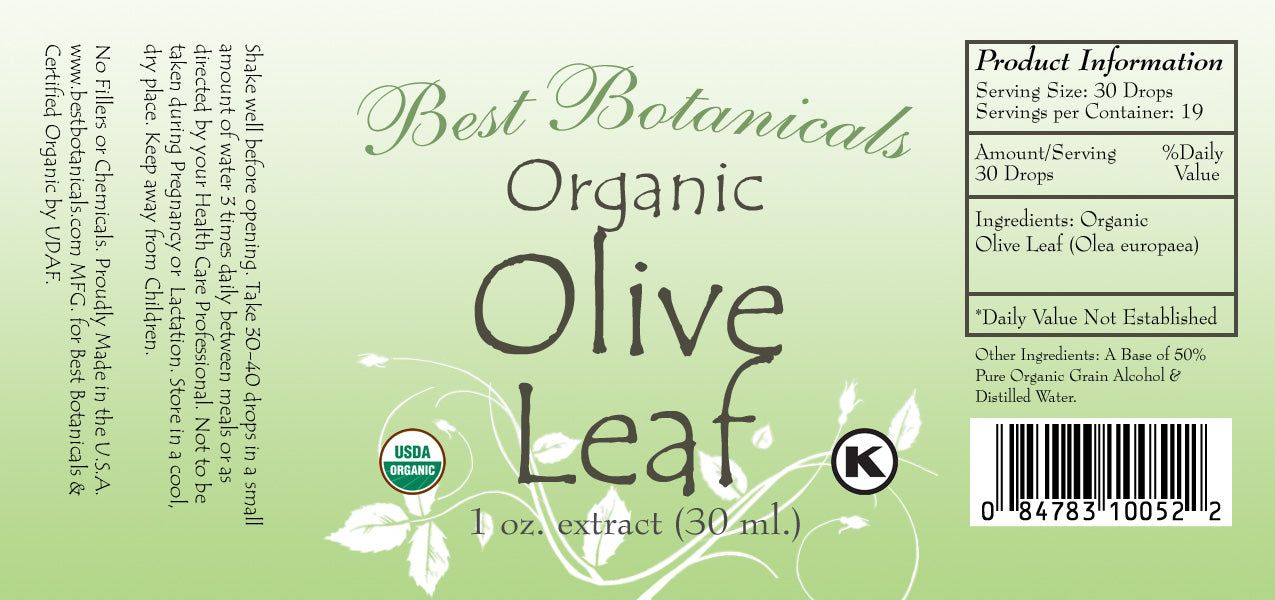 Olive Leaf Extract 1 oz. 50% pure grain alcohol base.